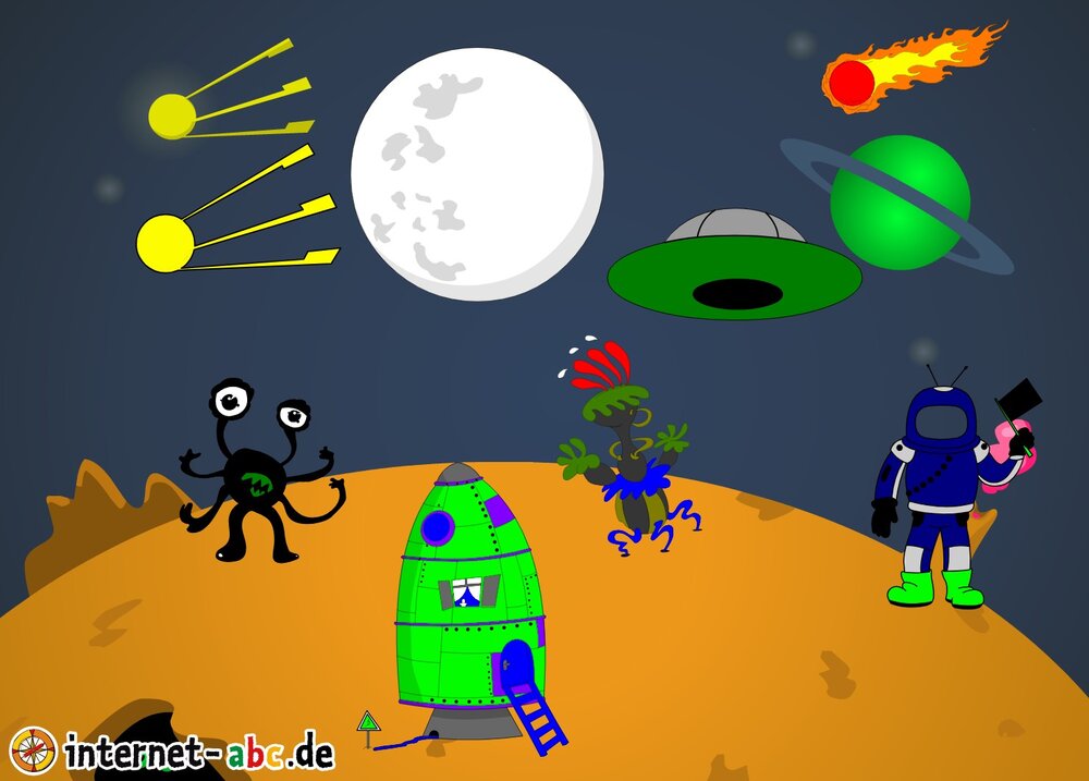 Hier kannst du sehen, welche Bilder es schon zum Thema Weltraum gibt. Klicke auf ein Bild oder eine Überschrift, um zur Seite zu gelangen. Dort findest du auch eine passende Geschichte zum Bild.