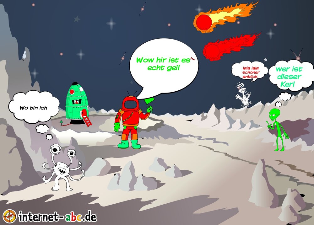 Es war ein mal ein Astronaut der von der geschmissen is alle in der Erde hasten den Kerl deshalb lebt er jetzt auf den Mond.