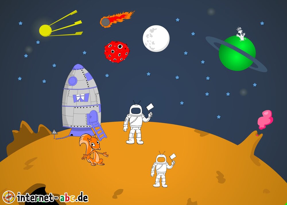 Hier kannst du sehen, welche Bilder es schon zum Thema Weltraum gibt. Klicke auf ein Bild oder eine Überschrift, um zur Seite zu gelangen. Dort findest du auch eine passende Geschichte zum Bild.