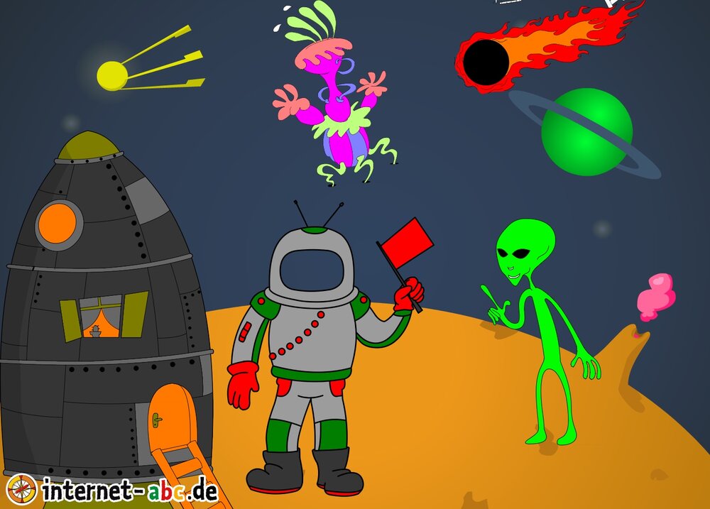Hier kannst du sehen, welche Bilder es schon zum Thema Weltraum gibt. Klicke auf ein Bild oder eine Überschrift, um zur Seite zu gelangen. Dort findest du auch eine passende Geschichte zum Bild.