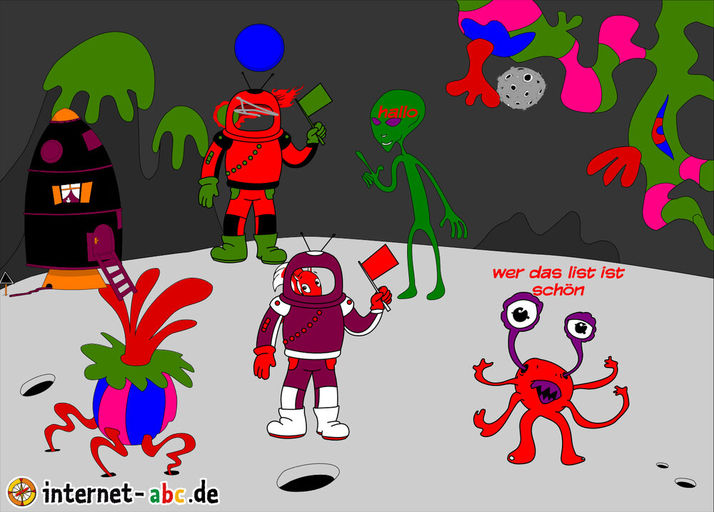 Hier kannst du sehen, welche Bilder es schon zum Thema Weltraum gibt. Klicke auf ein Bild oder eine Überschrift, um zur Seite zu gelangen. Dort findest du auch eine passende Geschichte zum Bild.