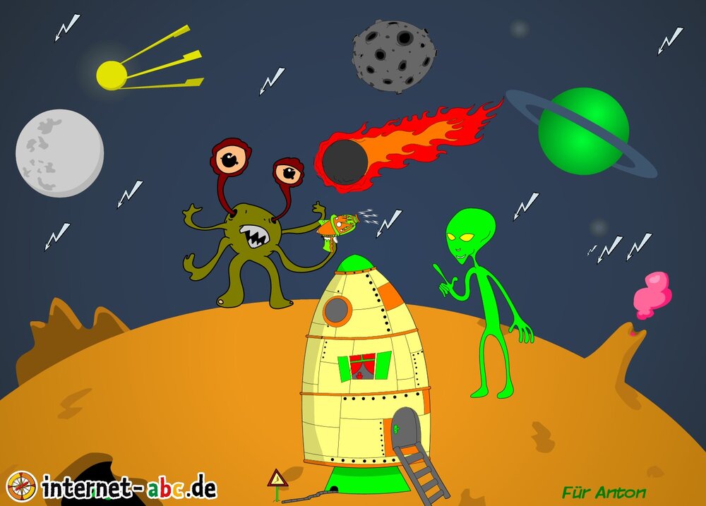 Hier kannst du sehen, welche Bilder es schon zum Thema Weltraum gibt. Klicke auf ein Bild oder eine Überschrift, um zur Seite zu gelangen. Dort findest du auch eine passende Geschichte zum Bild.