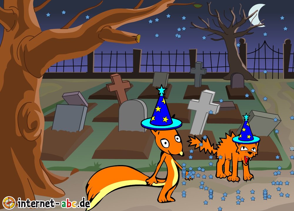 Flizzi und ihre Katze sind auf dem Fridhof und Flizzi übt ihre Magie.