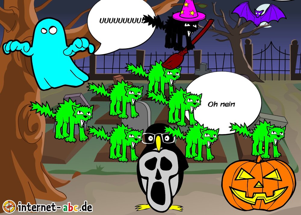 Hier kannst du sehen, welche Bilder es schon zum Thema Halloween gibt. Klicke auf ein Bild oder eine Überschrift, um zur Seite zu gelangen. Dort findest du auch eine passende Geschichte zum Bild.
