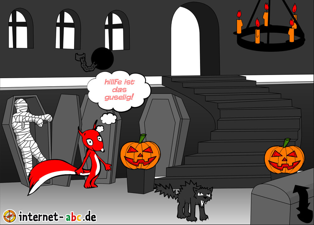 Hier kannst du sehen, welche Bilder es schon zum Thema Halloween gibt. Klicke auf ein Bild oder eine Überschrift, um zur Seite zu gelangen. Dort findest du auch eine passende Geschichte zum Bild.