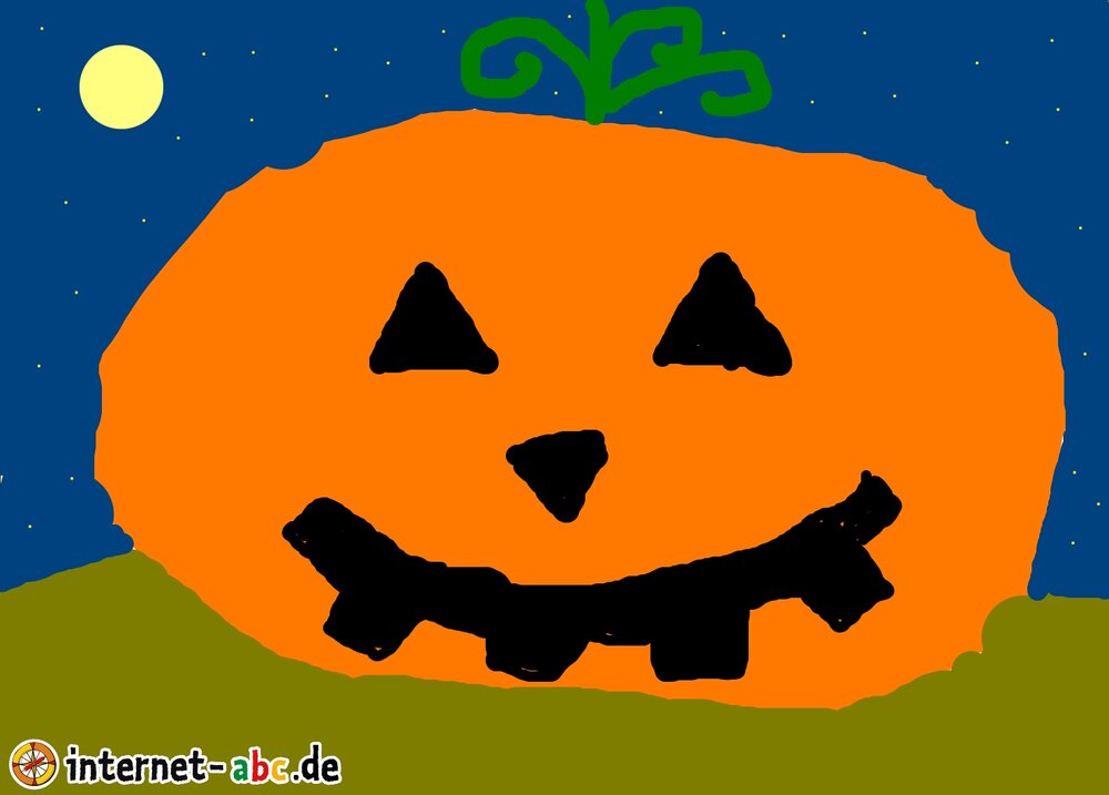 Der Kürbis gehört eigentlich einer Hexe.Aber die Hexe hat den Kürbis auf einem Besen Flug aus vehrsehen runter fallen lassen ,und jetzt lieg der Kürbis auf einer wiese .Und wartet darauf wieder gefunden zu werden .
