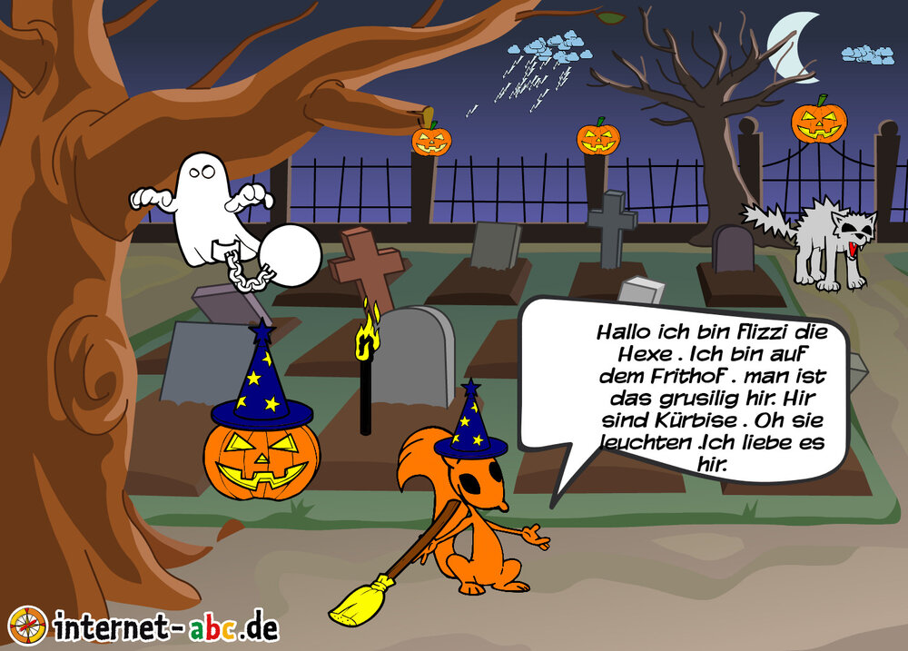 Hexe flizzi gign zum Frithof.Dort traf sie eine katze.Die katze war gemein. Es wurde dunkel .Dann bin ich nachhause .ende gut ales gut.