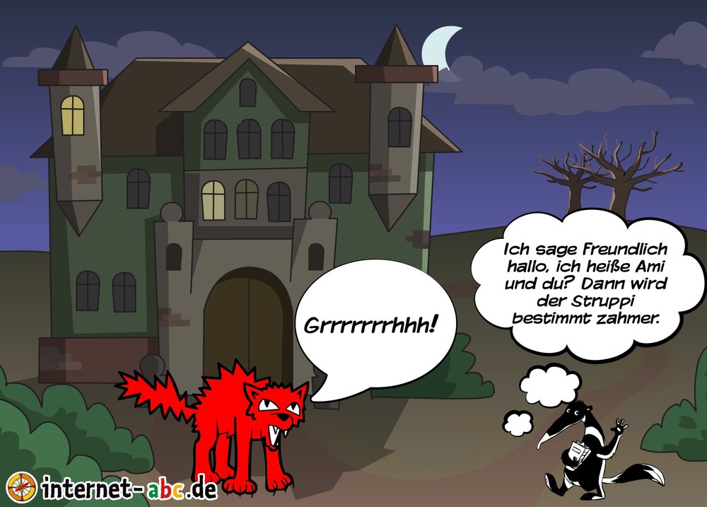 Ami versucht es mit Freundlichkeit. Vielleicht wird Struppi zahmer.