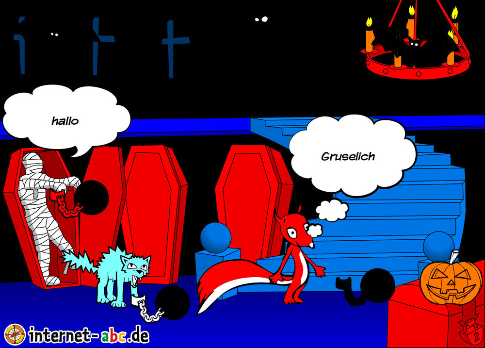 Hier kannst du sehen, welche Bilder es schon zum Thema Halloween gibt. Klicke auf ein Bild oder eine Überschrift, um zur Seite zu gelangen. Dort findest du auch eine passende Geschichte zum Bild.