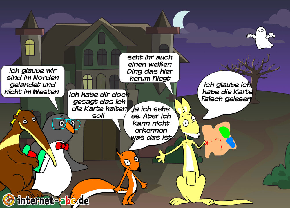 Die vier Freunde wollten in den Urlaub in den Westen fahren.Aber Jumpy hatte ausversehen falsch die Karte gelesen und jetzt sind sie im Norden
