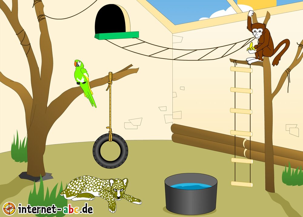 Im zoo gebtes viele tiere ein affe,Jaguar und papagei