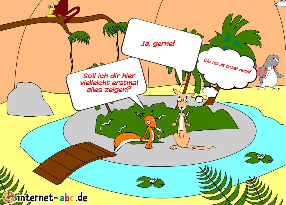 Gerade eben erst, war Sky, das Känguru, im Zoo angekommen. Schüchtern ging sie in ein großes Gehege. Eine kleine Eichhörnchen-same, schien zu merken das Sky neu und schüchtern war. So tapste das Eichhörnchen auf Sky zu und fragte: "Soll ich dir hier vielleicht erstmal alles zeigen?", sie fügte hinzu:"Ich bin übrigens Light."Die ist aber nett, dachte Sky. "Ja, gerne!", sagte Sky. So zeigte Light ihr alles.