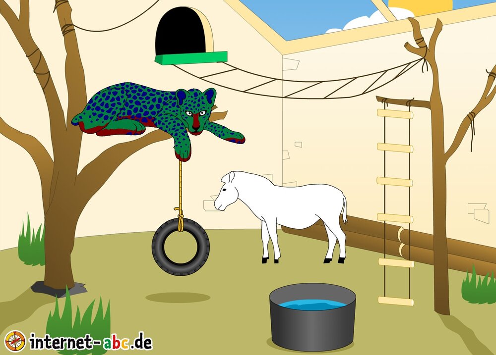 Der Leopard und das Pony leben im Zoo.