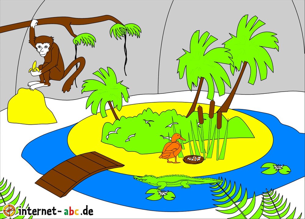 Im Zoogehege gibt es viele verschiedene Tiere.