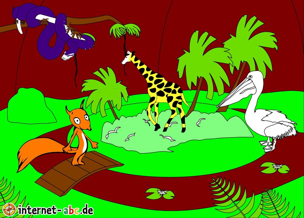 Es wa ein Zoo . Da war Giraffe,Schlange ,Pelekan und Flizi.