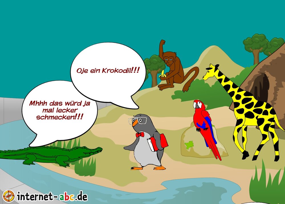 Es waren einmal ein Krokodil ein Affe eine Giraffe und ein Papagei Eddi der Pinguin war auch mit dabei. das Krokodil aber wollte Eddi fressen die anderen Tiere waren so aufgeregt das sie nicks getan haben. Und wie es weiter geht werdet ihr im nächsten Bild erhfahren. Bis dahin bleibt grativ und bleibt neugirig und gesund. Und die die schon krank sind oder waren passt auf und werdet gesund. Bis bald.