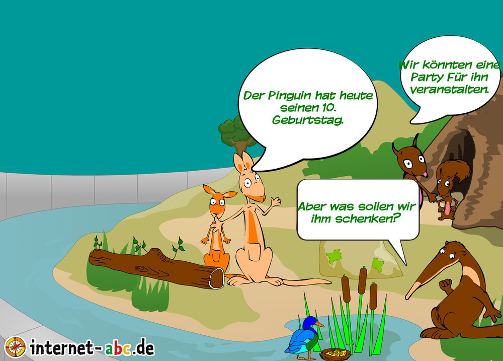 Die Tiere im Zoo wollen für den Pinguin eine Party organisieren, da dieser heute Geburtstag hat. Doch sie wissen leider nicht, was sie ihm schenken sollen.