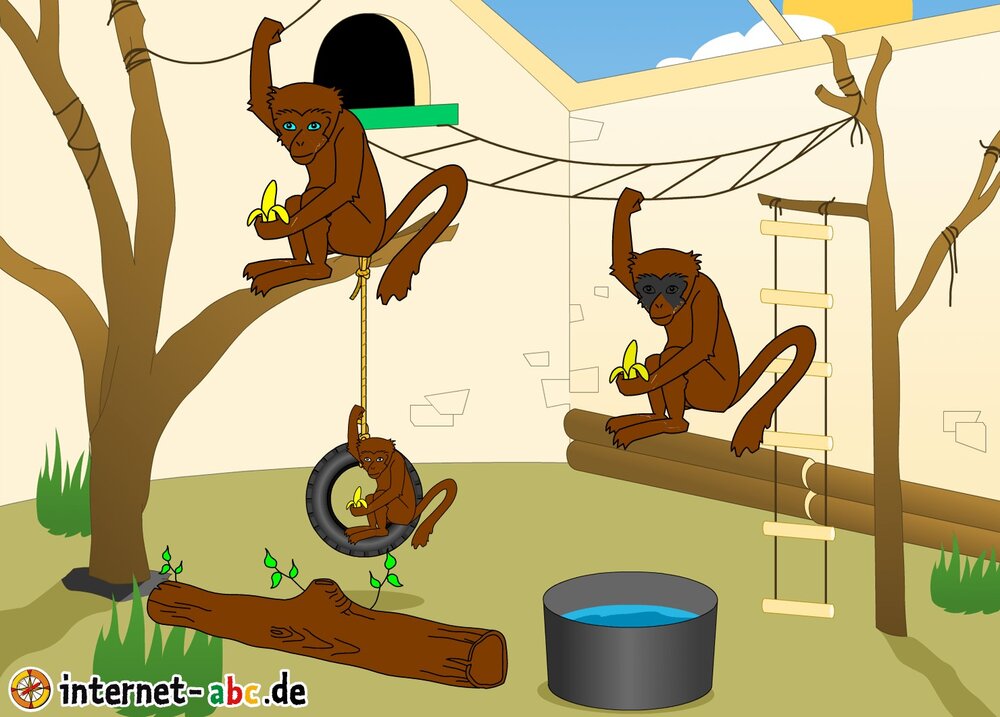 Eine Affenfamilie lebte in einem Zoo sie hatten ein Kind und aß sehr gerne Bananen.