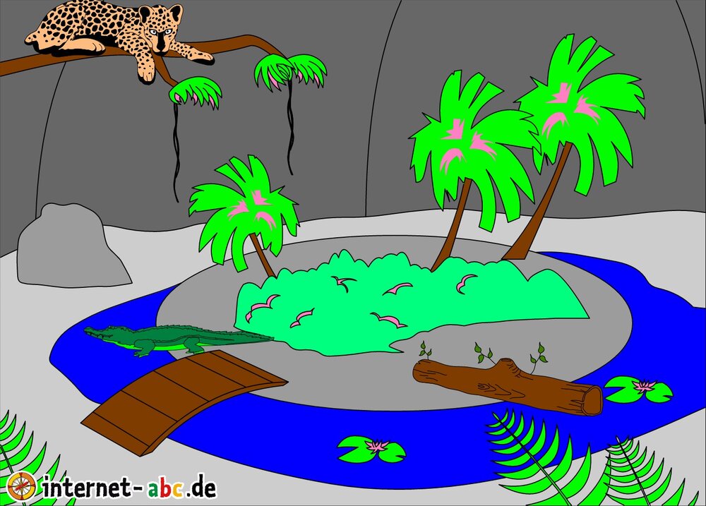 Leopard und Krokodiel kommen in denn Zoo