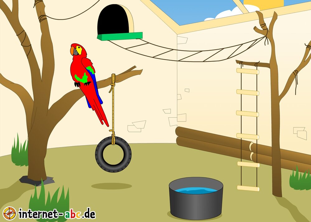 Das ist Papagei Perri. Er ist neu im Zoo...