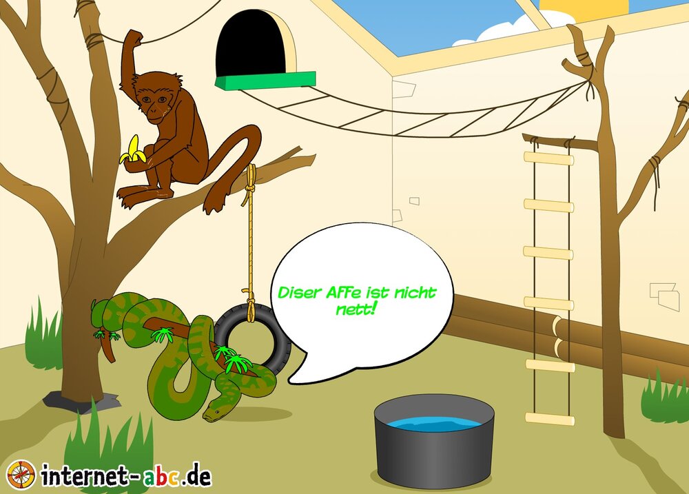 Die Schlange findet der Affe ist nicht nett eigentlich ist er das aber