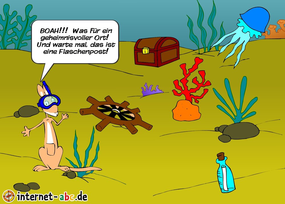 Und da ist auch eine Flaschenpost, was da wohl steht?
