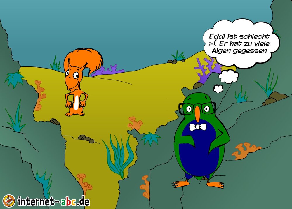 Eddi und Flitzy gingen Tauchen. Eddi hat Algen probiert und die haben verdammt gut geschmeckt so dass Eddi aus versehen zu viele gegessen hat. :-(