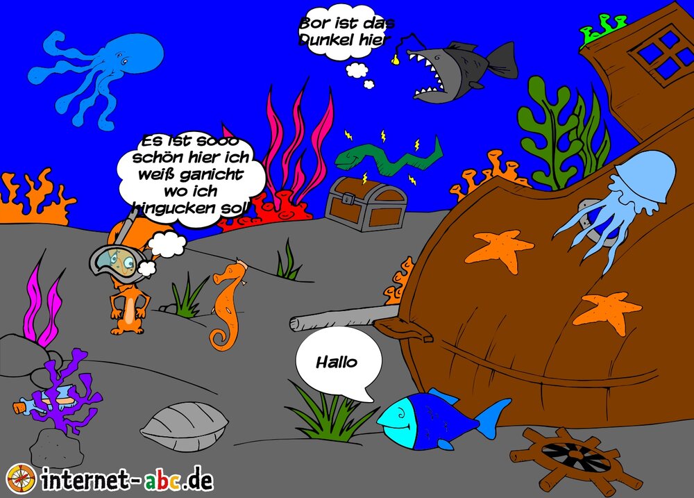 Hier kannst du sehen, welche Bilder es schon zum Thema "Tiefsee" gibt. Klicke auf ein Bild: Auf der kommenden Seite kannst du das größere Bild anschauen und die Geschichte dazu lesen. Du kannst einzelne Bilder auch bewerten und etwas dazu schreiben.