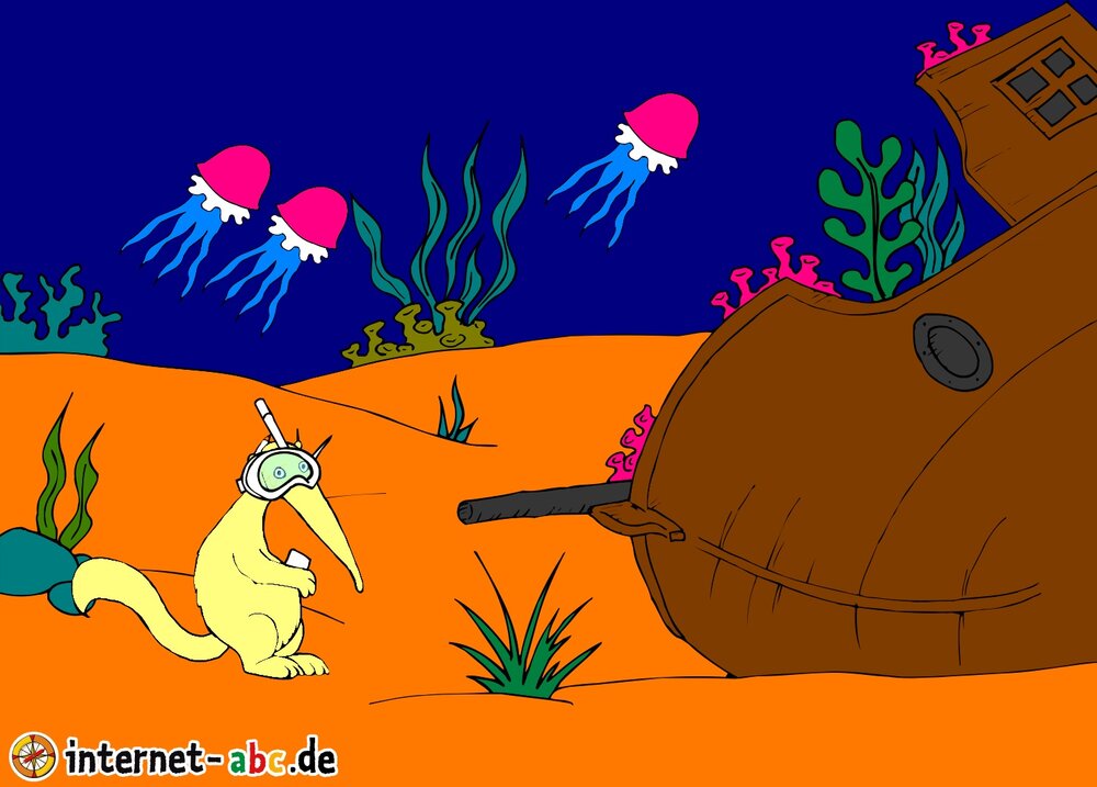 Es war einmal ein Ameisenbär und schwam auf den Meeresgrund er sah dort fantastische Lebewesen. Er erzählte von den bunten Lebewesen, sofort kamen alle um sie zu sehen.