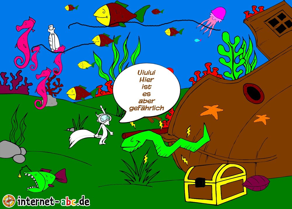 Hier kannst du sehen, welche Bilder es schon zum Thema "Tiefsee" gibt. Klicke auf ein Bild: Auf der kommenden Seite kannst du das größere Bild anschauen und die Geschichte dazu lesen. Du kannst einzelne Bilder auch bewerten und etwas dazu schreiben.