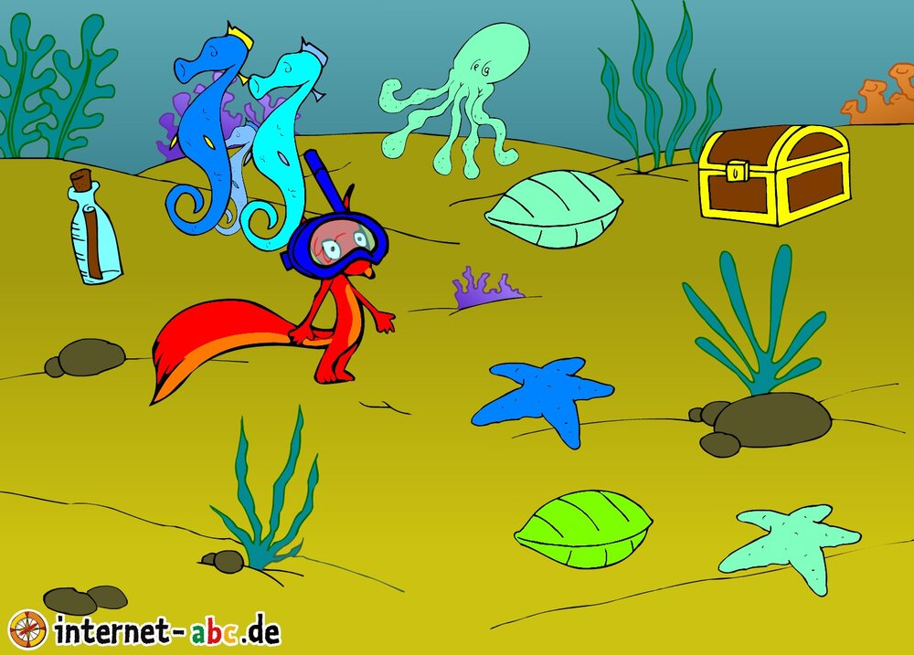 Flizi ist in den Urlaub zum Meer gefahren und geht tauchen. Flizi sieht