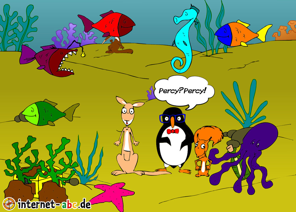 Willkommen in der Unterwasserwelt!Kannst du die Schatzkarte,die Schatztruhe und Percy finden?