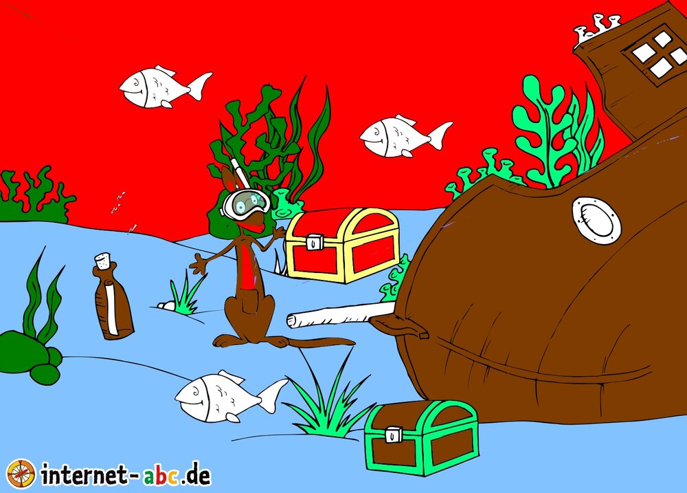 Eines mochgens ging ich spatsiren und dann habe ich was gesehen das war ein Schiff und es war am sinken uich wolte es reten aber es war zu spät aber ich bin dar für ins mer herunter getaucht und dawan so wiele sachen undan habe ich das Schiff gefunden und noch einen Schatz. lieb grüße ocher Amjad