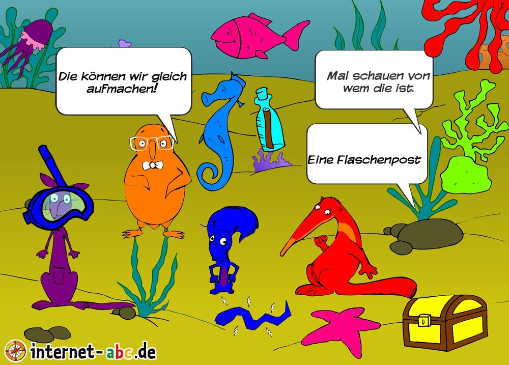 Die Schulklasse macht einen Ausflug in die Unterwasserwelt. Plötzlich findet der Ameisenbär eine Flaschenpost und alle wollen wissen von wem diese ist Als beschließen sie diese zu öffnen.