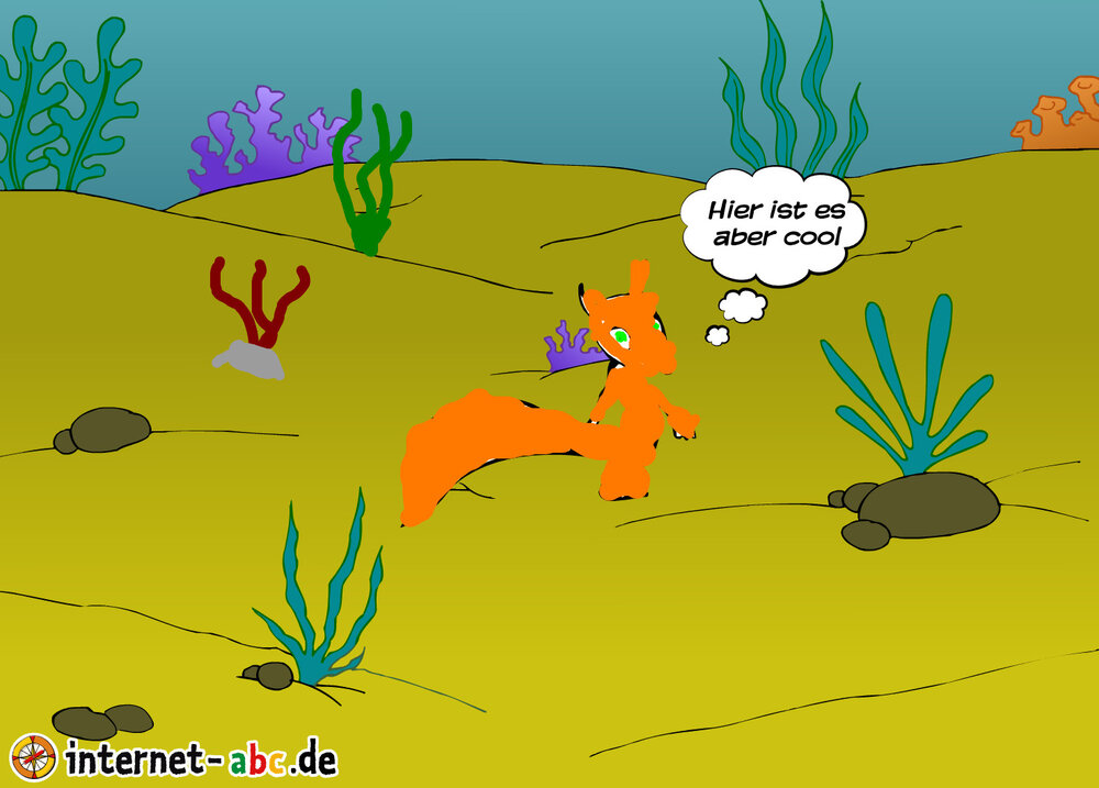 Flizzi ist getaucht.Sie betrachtet die wunderschöne Unterwasserwelt