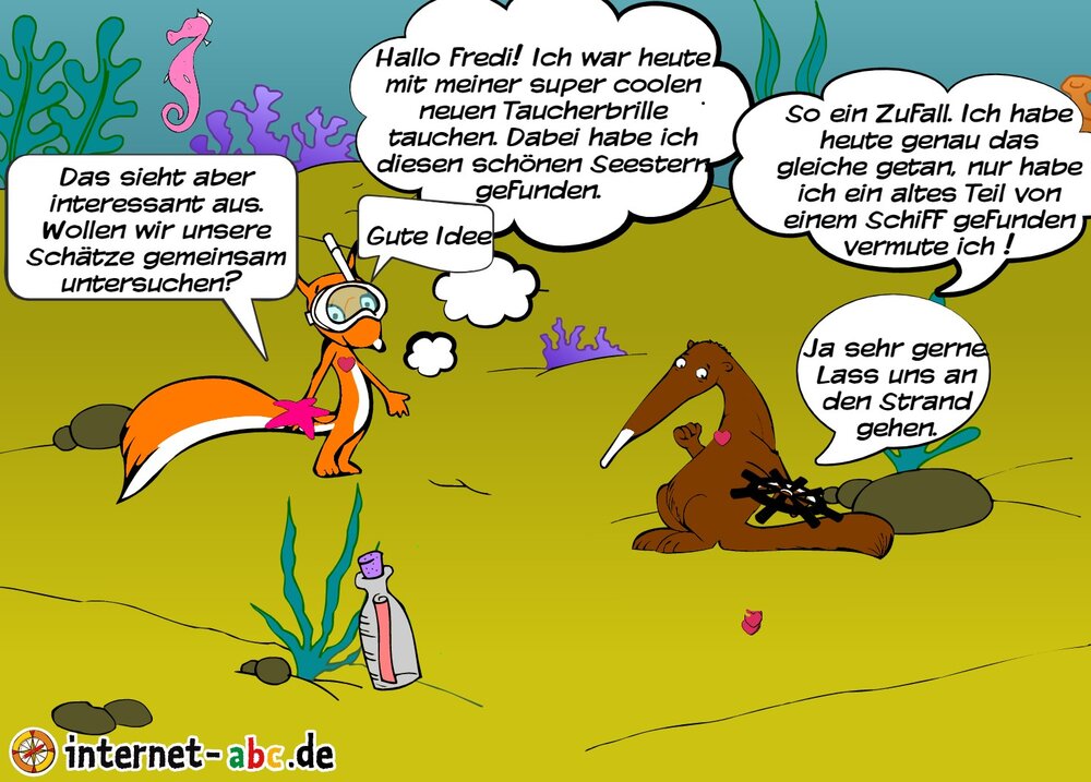 Hier kannst du sehen, welche Bilder es schon zum Thema "Tiefsee" gibt. Klicke auf ein Bild: Auf der kommenden Seite kannst du das größere Bild anschauen und die Geschichte dazu lesen. Du kannst einzelne Bilder auch bewerten und etwas dazu schreiben.