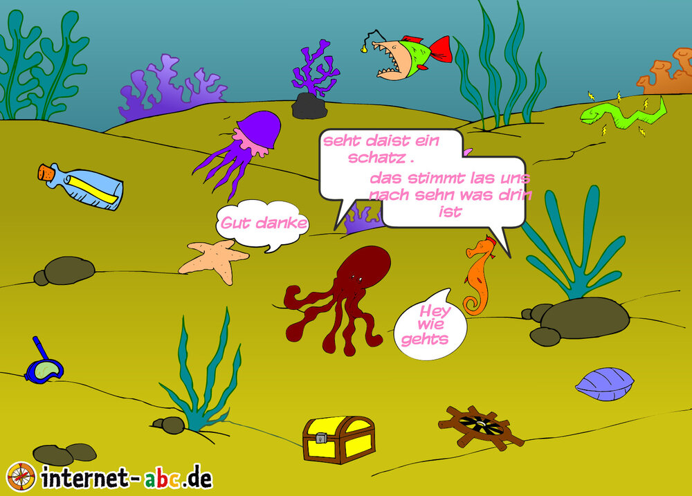 Es handlt von freundendie einen schatz finden sie kucken nach was drinnen ist sie finden eine flaschenpostsie geht aber verlorenuns die freunde suchen und suchen wie verrückt aber sie finen sie nicht .