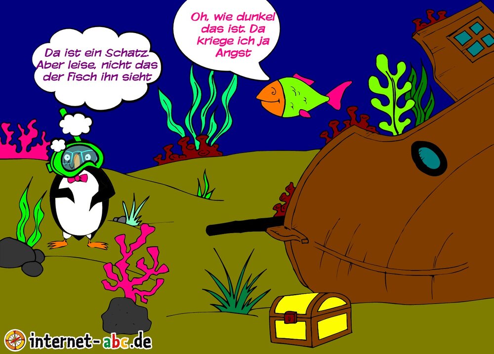 Der Pinguin sieht einen Schatz aber er will nicht das der Fisch ihn sieht...