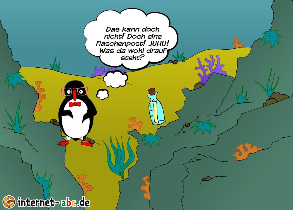 Der Piguin Calle findet eine Flaschenpost. In der Flasche ist eine schatzkarte. Calle macht sich auf den Weg um den Schatz zu suchen, und findet ihn!!!