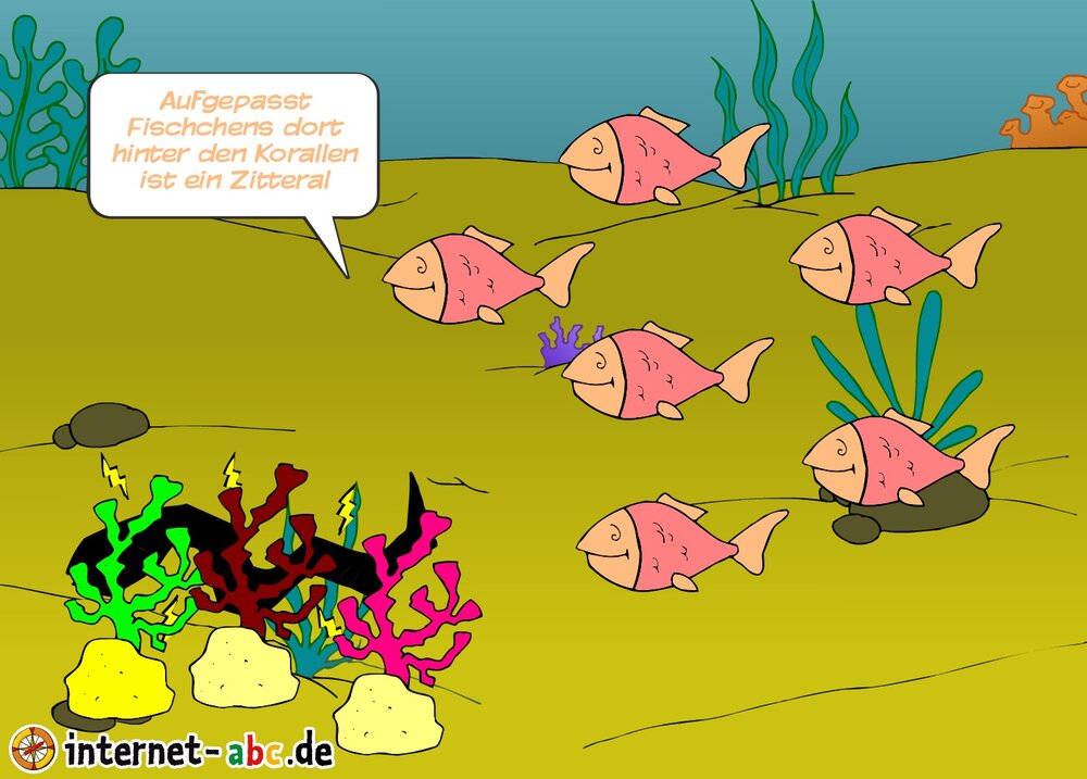 Die Fische Schwimmen durchs Meer doch Plötzlich sehen sie einen Zitteral