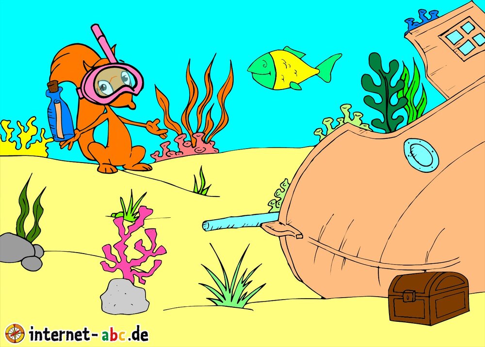 Fizzy geht tauchen im Meer und sieht eine Schatzkiste