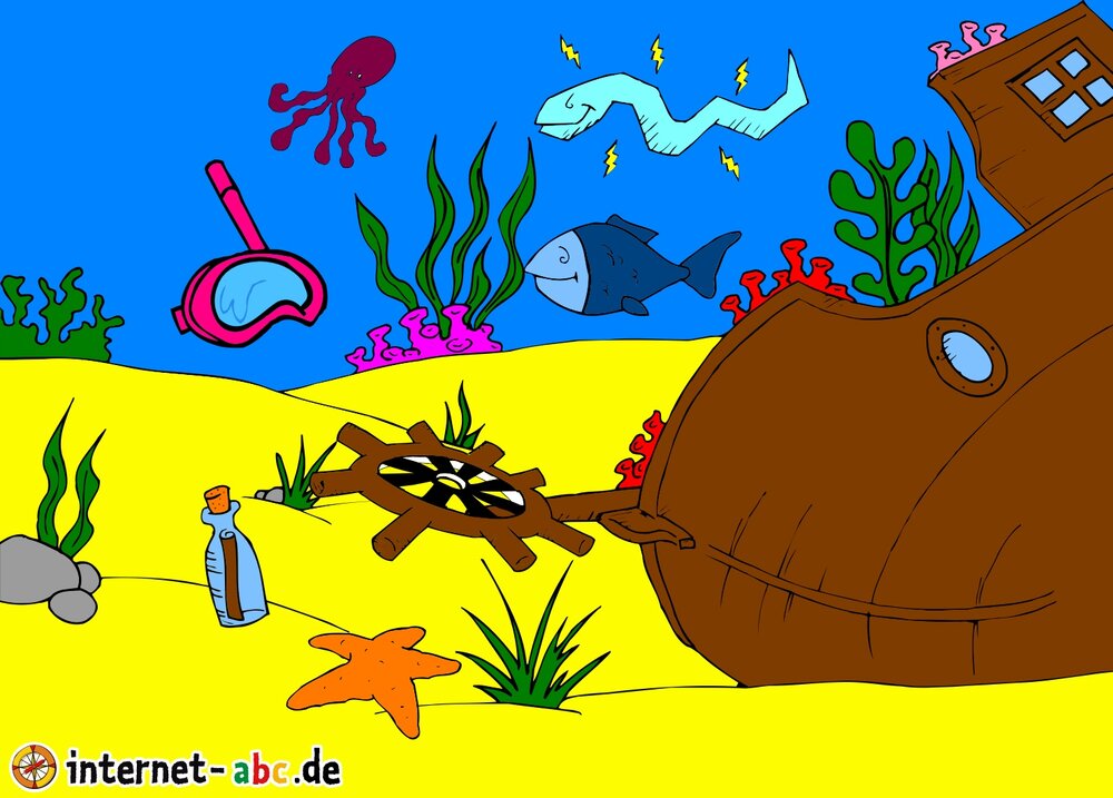 Ein versunkenes Shift taucht auf. Meeresgrund von einem Fisch wird das entdeckt, und er stirbt, weil ein ein Steuerrad auf einem Feld