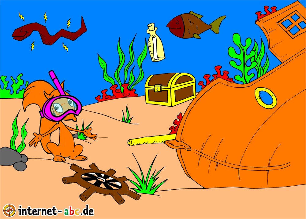 Flizzi findet auf dem Grund des Meer einen Schatzt