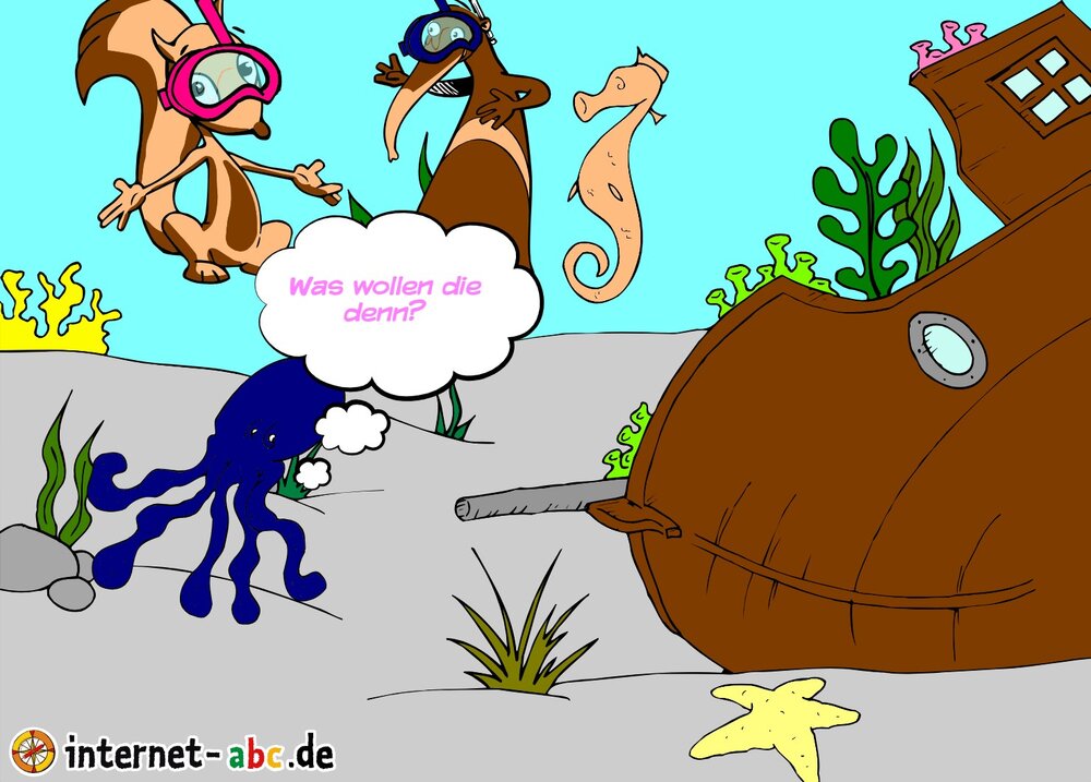 Lilli und Aladien unternehmen einen Tauchgang. "Wow!", Lilli staunte. "Schade das wir nicht so weit runter können, denn sonst läuft Wasser in unseren Schnorchel...", Aladien seufzte.