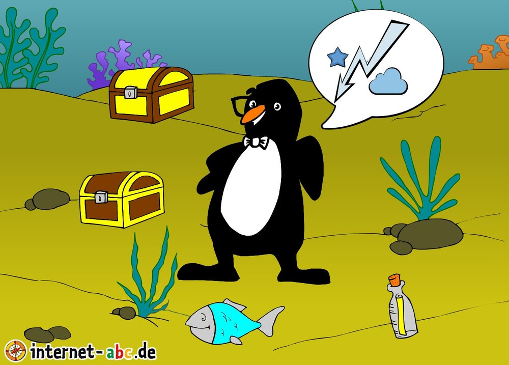 Der Pinguin ist Unterwasser gelandet da er den Schatz seiner Ahnen suchen will.