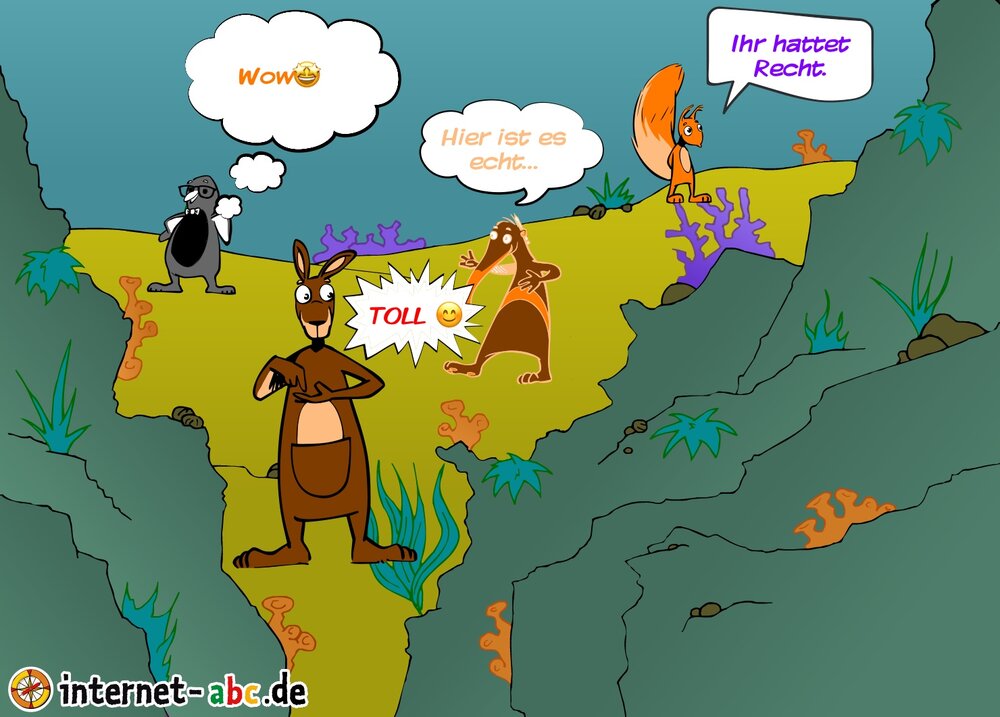 Hier kannst du sehen, welche Bilder es schon zum Thema "Tiefsee" gibt. Klicke auf ein Bild: Auf der kommenden Seite kannst du das größere Bild anschauen und die Geschichte dazu lesen. Du kannst einzelne Bilder auch bewerten und etwas dazu schreiben.