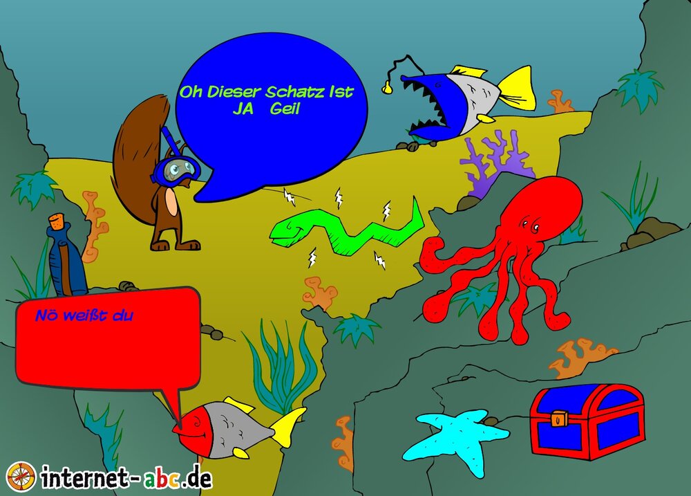 ES GEHT UM EIN EICHHÖRNCHEN DAS EIN SCHATZ FINDET UND EIN HAI EIN FISCH VERJAGT