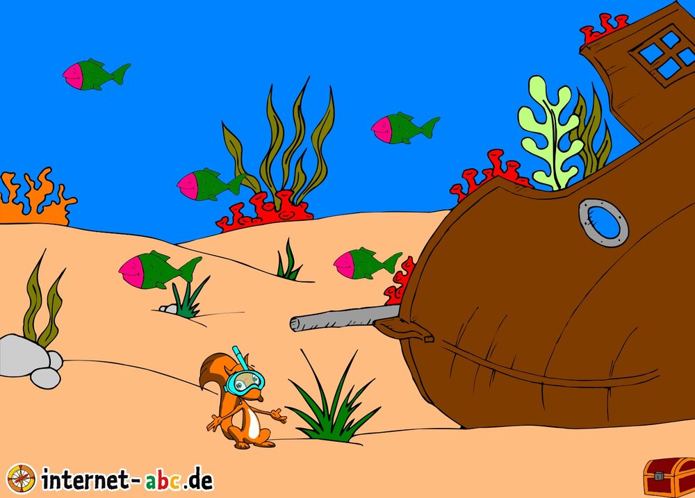 Eines Tages bekam Flizzi eine neue Taucherbrille sie muste sie natürlich sofort ausprobieren. Als sie an einem alten frak vorbei kam sah sie eine kleine Truhe, sie schwam hin und öfnete die Truhe. In der befanden sich aber KEINE Goldmünzen sondern nur ein Zetel auf dem in großen Buchstaben stand: DU BIST EIN SCHATZ. Glücklich schwam Flizzi weiter. ENDE.