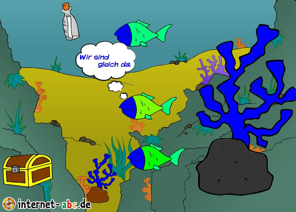 Die drei Blaukopffische finden den Schatz.