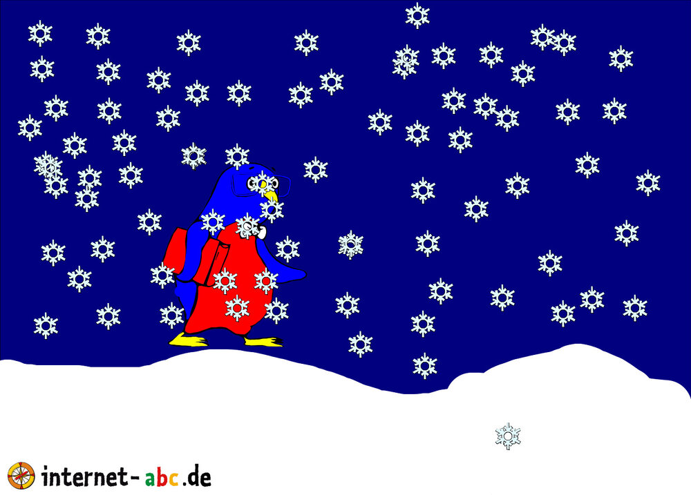 Es schneit Edi ist aufgeregt.